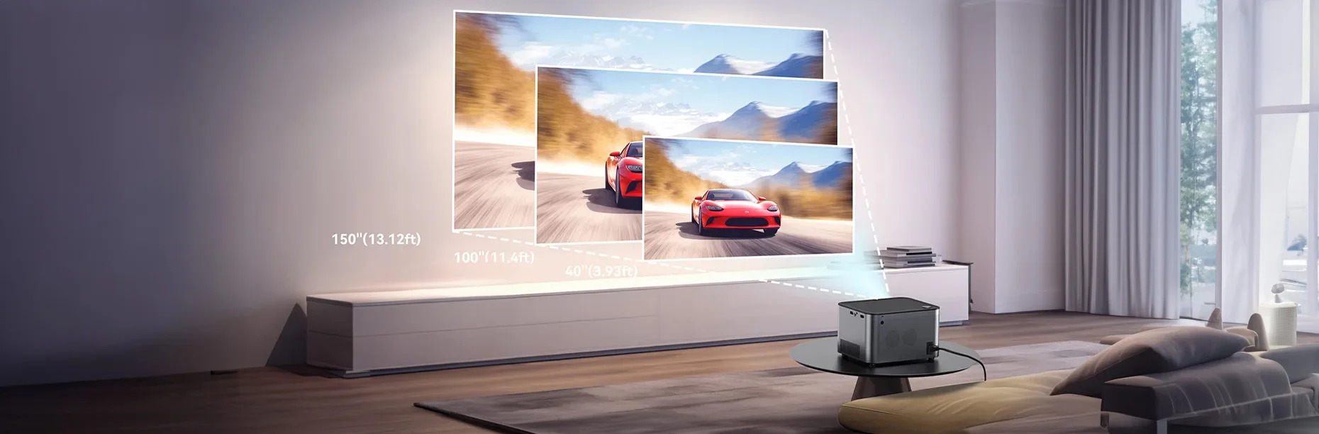 With an adjustable screen size ranging from 30" to 150", it creates a cinematic feel in your home, allowing you to achieve the perfect image size in any environment.